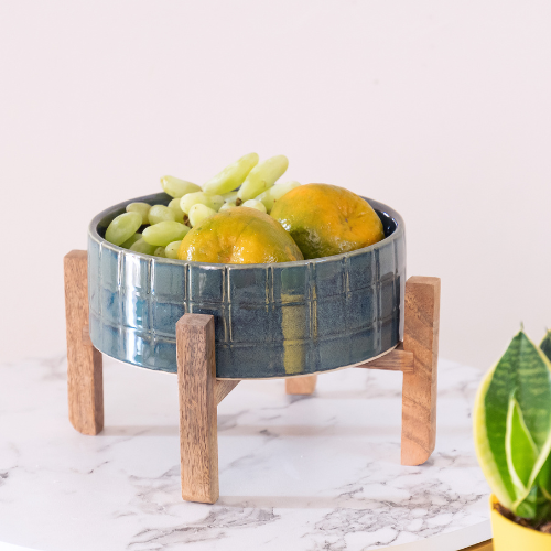 This stylish Fruit & Curd Bowl is a perfect blend of functionality and modern design. Crafted with a smooth glazed ceramic bowl and supported by a sturdy wooden stand, it adds a natural and elegant touch to your dining or kitchen space. Ideal for serving fresh fruits, curd, salads, or snacks, this bowl keeps food neatly presented while enhancing tabletop aesthetics. The elevated stand ensures stability and easy access, making it suitable for everyday use or special occasions. With its minimal yet contemporary appeal, this Fruit & Curd Bowl fits effortlessly into modern, rustic, or Scandinavian-style interiors, offering both practicality and visual charm.